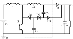 這種新型無源軟開關變換器在Boost基本拓撲基礎上附加了一個子電路,如圖1虛框中所示。