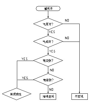 印刷機整體的電氣設計還是比較復雜的,對時間的要求也很嚴格。在機器的很多地方裝有接近開關,用來檢測不同的時間點。在印刷過程中,走紙的好壞是影響機器質量的一個重要環(huán)節(jié)。所謂紙走的好壞,指的是無歪張,雙張等現(xiàn)象,如果有歪張,雙張現(xiàn)象,在高速情況下,就會將走壞的紙,卷入機器內,從而破壞膠皮,給用戶帶來很大損失。此過程流程如下:
