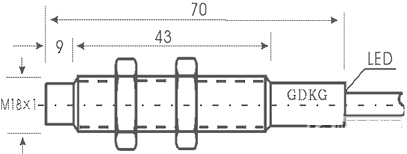 圖1 CLG型M18×70電容式接近開(kāi)關(guān)外型圖