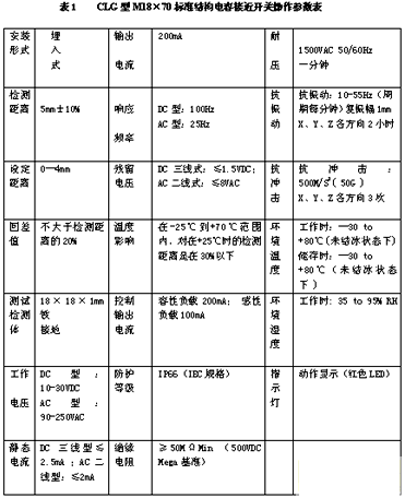 電容式接近開(kāi)關(guān)屬于一種具有開(kāi)關(guān)量輸出的位置傳感器,它的測(cè)量頭通常構(gòu)成電容器的一個(gè)極板,而另一個(gè)極板是物體的本身,當(dāng)物體移向接近開(kāi)關(guān)時(shí),物體和接近開(kāi)關(guān)的介電常數(shù)ε發(fā)生變化,使得和測(cè)量頭相連的電路狀態(tài)也隨之發(fā)生變化,由此便可控制開(kāi)關(guān)的接通和關(guān)斷。被這種接近開(kāi)關(guān)的檢測(cè)物體,并不限于金屬導(dǎo)體,也可以是絕緣的液體或粉狀物體,在檢測(cè)較低介電常數(shù)ε的物體時(shí),可以順時(shí)針調(diào)節(jié)多圈電位器(位于開(kāi)關(guān)后部)來(lái)增加感應(yīng)靈敏度,一般調(diào)節(jié)電位器使電容式的接近開(kāi)關(guān)在0.7-0.8Sn(Sn為電容式接近開(kāi)關(guān)的標(biāo)準(zhǔn)檢測(cè)距離)的位置動(dòng)作。這里選用的是浙江省洞頭縣光電開(kāi)關(guān)廠(chǎng)生產(chǎn)的CLG型M18×70標(biāo)準(zhǔn)結(jié)構(gòu)的開(kāi)關(guān)。它的外型圖與尺寸標(biāo)示圖分別如圖1與圖2所示。