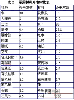 部分常用材料介電常數(shù)如表2所示。