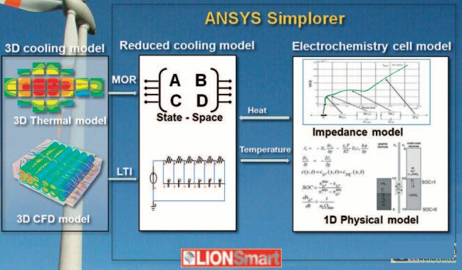 ADFEM、ZSW和Lionsmart三家受了德國ZF的資助,對(泛鋰)電池進行了熱方向的建模。CADFEM主要的工作,是把電池包的內(nèi)部散熱通 過簡化的方法進行處理,這種MOR的方法,我個人沒有搞太明白,應該是一種將多自由度通過處理后簡化的方法。ANSYS就是做這個事情滴,由于本人沒有特 別的基礎,因此避過這一塊。