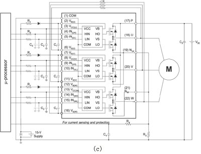 除了自舉電路問題外,采用HVIC還會引起許多別的問題;尤其當VB電平低于地電平時最為顯著。在HVIC中,高壓側(cè)柵極單元是用p-n結(jié)隔離的,而輸入信號要通過額定電壓為625V的電平漂移MOSFET傳輸?shù)礁邏簜?cè)單元。為了降低信號傳輸期間的功耗,將開關(guān)信號轉(zhuǎn)換成置位復(fù)位脈沖;該脈沖觸發(fā)對應(yīng)電平漂移MOSFET和高壓側(cè)單元中的置位復(fù)位(SR)閂鎖電路。當VS低于 -5V時,電平漂移MOSFET不能傳送觸發(fā)信號到高壓側(cè)邏輯電路。而且,若VB小于0V,VB與邏輯地之間的寄生二極管將會導(dǎo)通;這會產(chǎn)生過量的電流,從而破壞HVIC。在實際應(yīng)用中,當負載電流非常大,或有沖擊電涌噪聲施加在VB或VS端時,VB可能在很短時間內(nèi)被拉到0V以下。除了對HVIC本身造成破壞外,還會使HVIC出現(xiàn)誤操作或閂鎖現(xiàn)象。當HVIC出現(xiàn)閂鎖時,其行為將不可預(yù)測,而且,即使在恢復(fù)正常狀態(tài)后,也可能被電源端之間的過量電流損壞。這類現(xiàn)象與HVIC的設(shè)計規(guī)則緊密相關(guān),在設(shè)計階段就應(yīng)排除這種隱患。當HVIC產(chǎn)生誤操作時,誤操作導(dǎo)致的非正常關(guān)斷可能中斷正常的控制動作,但不大可能導(dǎo)致整個系統(tǒng)的破壞。然而,如果高壓側(cè)SR閂鎖電路因電涌噪聲而異常開啟,高壓側(cè)功率MOSFET將處于非控導(dǎo)通狀態(tài),且不能在輸入信號的脈沖負沿到來時復(fù)位。這種行為很可能在逆變器的某一管腳上造成短路,進而破壞功率模塊。為了防止這種現(xiàn)象,設(shè)計模塊的HVIC時,我們針對可能出現(xiàn)的工作和環(huán)境條件,將出現(xiàn)誤操作的可能性降到最低。同時,當過量的電涌或沖擊噪聲施加在器件上時,電平漂移單元和SR閂鎖電路被設(shè)計成具有關(guān)斷優(yōu)先的特性。