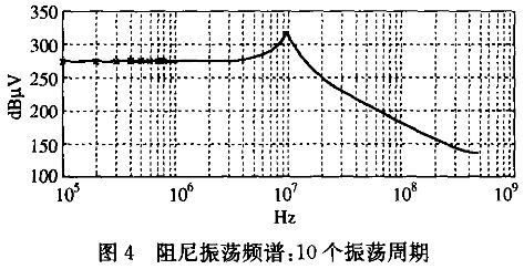 為了研究阻尼振蕩對電磁干擾的影響,本文同樣單獨(dú)對其進(jìn)行了研究,圖4為其頻譜,