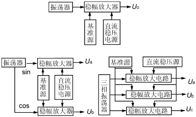 根據(jù)輸出交流電源的相數(shù),穩(wěn)頻電源可分為單相式,兩相正交式和三相對稱式。單一輸出量的穩(wěn)頻穩(wěn)壓源由于各相間的相移恒定,因此不需要移相調(diào)節(jié)電路。當輸出物理量既要求有電壓回路,還要求有電流回路,且電壓與電流的相位差要求既能調(diào)節(jié)又能穩(wěn)定以適應不同負載時,則相應的穩(wěn)頻穩(wěn)壓/穩(wěn)流電源應包括電壓和電流輸出回路。其結構如圖1所示。