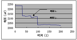 由于內(nèi)阻值很小,在一定電流下的電壓變化幅值相對較小,給準(zhǔn)確測量帶來困難,由于放電過程電壓的變化,需要選擇穩(wěn)定區(qū)域計算電壓變化幅值。實(shí)際測量中,直流方法所得數(shù)據(jù)的重復(fù)性較差、準(zhǔn)確度很難達(dá)到10%以上。
