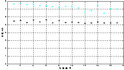 對12V100Ah開口蓄電池,分別采用HIOKI3550內(nèi)阻測試儀(工作頻率1000Hz,測量電流為幾十mA)和BM6500(工作頻率10Hz,測量電流1A)測量17只電池的內(nèi)阻,其結(jié)果如圖2-8所示,圖中“☆”為BM6500測得的數(shù)值,“+”是HIOKI3550所測得數(shù)值??梢夿M6500所測數(shù)據(jù)均比HIOKI3550的數(shù)值高。但從圖2-8還發(fā)現(xiàn),兩種方法測量的數(shù)據(jù)差值并不是一個恒值或者固定比例。