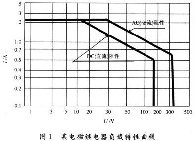 (2)不同電磁繼電器具有不同的負(fù)載曲線即負(fù)載電壓和負(fù)載電流的關(guān)系曲線,如圖1是某電磁繼電器負(fù)載曲線(最大切換能力)。