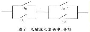 式中:Rt為并聯(lián)后的可靠度;R為每個繼電器的可靠度。觸點串聯(lián)能夠提高其負(fù)載電壓,提高的倍數(shù)為串聯(lián)觸點的組數(shù)。但使用時電壓不要高于線圈最大工作電壓,也不要低于額定工作電壓的90%,否則會危及線圈壽命和使用可靠性,如圖2所示。