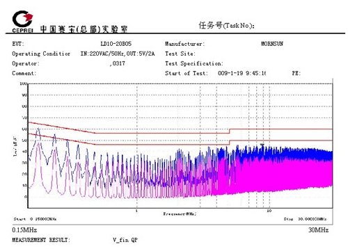 5. 具有較低的EMI性能。EN55011有l(wèi)evel B,level A兩個(gè)等級(jí),level B比level A嚴(yán)苛得多。圖2、圖3是LD10產(chǎn)品的EMI測(cè)試數(shù)據(jù),該數(shù)據(jù)由國(guó)家電子五所專(zhuān)業(yè)測(cè)試。測(cè)試結(jié)果可以看出,該系列電源具有較低的電磁輻射性能,達(dá)到EN55011,level B的要求。