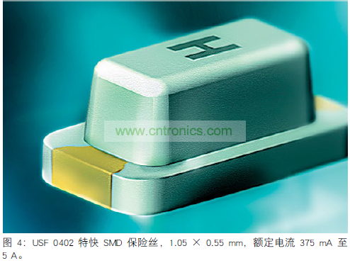 這通過獨特的設(shè)計實現(xiàn)。 熔絲是組合金屬絲,只有幾微米粗。 它采用特殊的金屬合金制造。 對于 USF 0402,熔絲外包一層環(huán)氧樹脂;對于 USFF 1206,熔絲略大,由空氣包圍。 兩種技術(shù)都能抑制熱量散發(fā),因此可以降低功耗。USF 0402 和 USFF 1206 是此類型號中僅有的、具有高精度跳閘時間的保險絲。