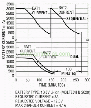 雙電池順序電池充電時(shí)間的對(duì)比