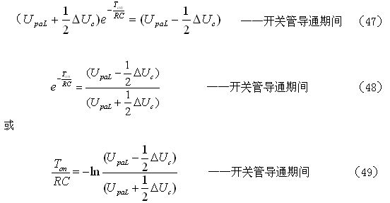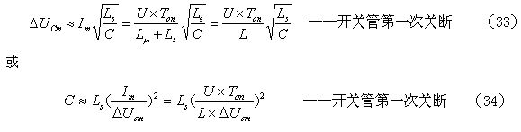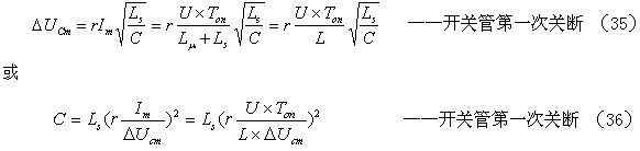 的值可根據(jù)(41)式求得。在使用(48)和(49)式之前,還需要先利用(33)和(34)式或(35)和(36)式計(jì)算出電容器C的容量,以及根據(jù)開關(guān)管的最大耐壓BVm定義好電容器C吸收尖峰脈沖電壓增量