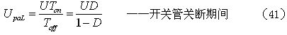 (41)式中,U為電源輸入電壓,Ton為電源開關(guān)管的導(dǎo)通時(shí)間,Toff為電源開關(guān)管的關(guān)斷時(shí)間,D為占空比。而