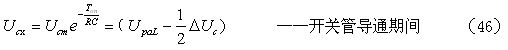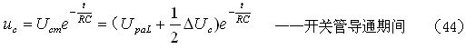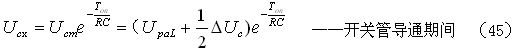 如果考慮電阻R對電容器C充電時(shí)的分流作用,以及開關(guān)管由導(dǎo)通到完全關(guān)斷期間漏極電流(逐步減?。﹄娙萜鰿充電時(shí)的分流作用,則(33)和(34)式可以改寫為: