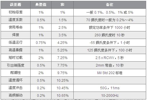 有趣的是,這樣給低壓輸出帶來了更高的精度。許多IC參考電壓范圍為0.6~1.25 V之間,輸出電壓降至這一范圍時(shí)會帶來1%或更高的精度。表1給出了您可能需要了解的一些信息,這些信息是典型電阻器產(chǎn)品說明書的電阻誤差術(shù)語匯編。在設(shè)計(jì)中,該列表會較難理解。大多數(shù)工程師都止步于初始容差,然而列表中還有一些或許不應(yīng)被忽略的誤差項(xiàng)。表格中的每一項(xiàng)都有其微妙的影響。例如,沒有指定具體的溫度系數(shù)范圍,而實(shí)際上兩個(gè)電阻都可能隨溫度變化以相同方向變化,并且不會在相反的極端。在對一些經(jīng)驗(yàn)豐富的設(shè)計(jì)工程師進(jìn)行簡單調(diào)查后,得出的結(jié)論是假設(shè)1%容差電阻的2.5%精度可在極端情況和合理成本之間得到一個(gè)合理的折中方案。