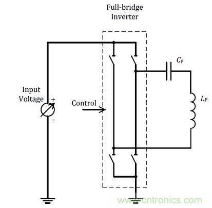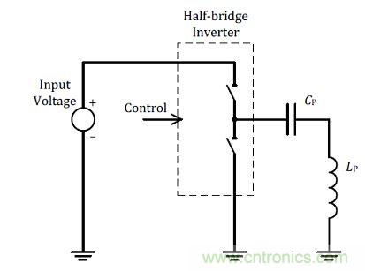 另外一個(gè)改變輸出功率的方式為改變發(fā)射端上的驅(qū)動電壓,參考圖(二)所示,在同一線圈與電容的諧振組合中,當(dāng)于驅(qū)動發(fā)射線圈上的開關(guān)電壓大小即直接改變的輸出功率的大小,在此將這個(gè)方式定義為變壓式功率調(diào)整。