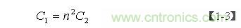 設(shè)次級線圈的分布電容為C2,等效到初級線圈后的分布電容為C1,則有下面關(guān)系式: