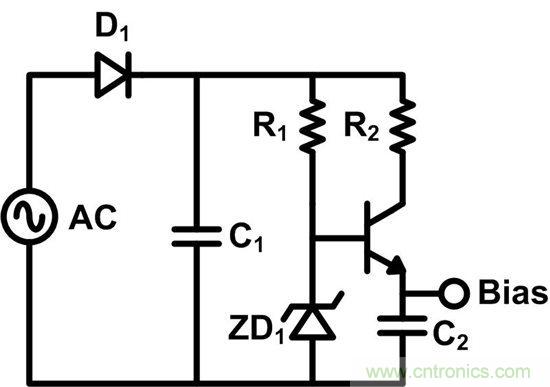 BJT 線性電路可提供一款組件數(shù)量最少的簡單偏置電源解決方案。不過,使用該方案的主要缺點是效率低。