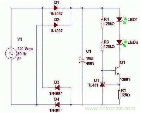 圖2:利用單個TL431恒流的改進(jìn)型示意圖