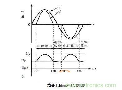 LN系列采用填谷電路進(jìn)行設(shè)計(jì),利用高壓陶瓷電容完美替代鋁電解電容,增加了整流管的導(dǎo)通角,使輸入電流波形從尖峰脈沖變得更接近正弦波,從而大幅度提高電源的功率因素(如表1所示),提高電源的轉(zhuǎn)換效率,更加利于環(huán)保節(jié)能,顯著降低總諧波失真。如圖所示: