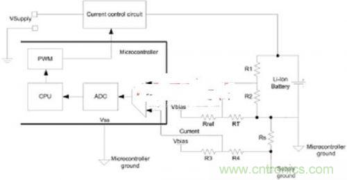 我們從充電曲線可以看出,單節(jié)鋰離子電池充電器需要可控的電流源。電流源輸出應(yīng)當(dāng)根據(jù)電池狀態(tài)而改變??紤]到上述要求,基于微控制器的實(shí)施方案需要以下功能模塊: