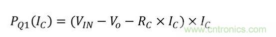 就晶體管Q1而言,因為有限流電阻器RC,所以在短路事件中不會發(fā)生最壞情況下的功耗。在正常運行期間Q1的功耗是集電極電流的函數(shù),如方程式7所示: