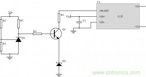 對(duì)于輸入端帶開關(guān)機(jī)控制的電源來說,關(guān)掉電源可以承受更高的輸入過電壓,輸入欠壓時(shí),也能保護(hù)不會(huì)因過流損壞。如下圖,通過簡(jiǎn)單的431基準(zhǔn)檢測(cè)電路,可精確設(shè)置過壓或欠壓保護(hù)值,保護(hù)電源在輸入電壓異常情況下不損壞。
