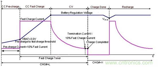 先來了解下鋰電池手機(jī)完整充電的三個(gè)階段:恒流預(yù)充電、大電流恒流充電和恒壓充電。手機(jī)電量耗光之后電壓降低,當(dāng)?shù)陀谝欢〝?shù)值時(shí)充電器會使用比較低的電流對鋰電池進(jìn)行預(yù)充電。經(jīng)過一段時(shí)間,鋰電池電壓高于預(yù)定數(shù)值后,就進(jìn)入第二個(gè)階段大電流恒流充電,此時(shí)適當(dāng)提高電流可以加快充電速度,具體過程可以參考下圖。