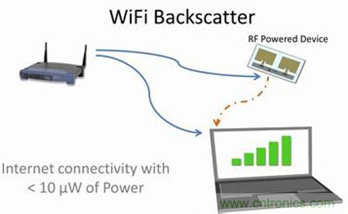 除了利用射頻做為電源,華盛頓大學(xué)的工程師們也發(fā)現(xiàn)了重復(fù)利用現(xiàn)有Wi-Fi信號(hào)為無(wú)電池設(shè)備提供連網(wǎng)功能的方法;這種稱(chēng)為Wi-Fi Backscatter的技術(shù),號(hào)稱(chēng)是第一個(gè)能讓無(wú)電池設(shè)備與Wi-Fi基礎(chǔ)設(shè)施鏈接的方案,奠基于讓低功率設(shè)備如溫度傳感器從廣播、電視與無(wú)線信號(hào)采集能量的較早期研究成果之上。