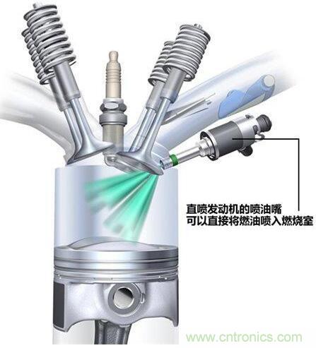 缸內(nèi)直噴,顧名思義就是直接將燃油噴入氣缸內(nèi)與空氣混合的技術(shù)。與傳統(tǒng)歧管?chē)娚涞囊饬x不同,缸內(nèi)直噴將噴射壓力更進(jìn)一步提高,使燃油霧化更加細(xì)致,真正實(shí)現(xiàn)了精準(zhǔn)地按比例控制噴油并與進(jìn)氣混合,同時(shí)消除了缸外噴射的缺點(diǎn)。在發(fā)動(dòng)機(jī)低轉(zhuǎn)速低載荷時(shí),延遲噴射,在活塞進(jìn)行壓縮沖程最后階段時(shí)噴射,利用空氣渦流,使燃油聚集在火花塞附近,分層燃燒實(shí)現(xiàn)節(jié)油的目的,但當(dāng)發(fā)動(dòng)機(jī)轉(zhuǎn)速上去,載荷上去時(shí),還是要提前噴射,在吸氣沖程就將燃油噴射進(jìn)去,使油氣均勻混合燃燒。