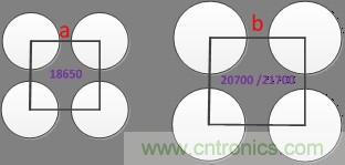 由于21700 /20700 /20650電池容量的增加在實(shí)際PACK設(shè)計(jì)中需要考慮單支電池安全失控后對(duì)周圍電池的影響及問(wèn)題的可控性,所以需要重新計(jì)算電池之間的“安全設(shè)計(jì)距離”,這個(gè)距離肯定要大于18650的(b 》 a),這進(jìn)一步增加了體積。
