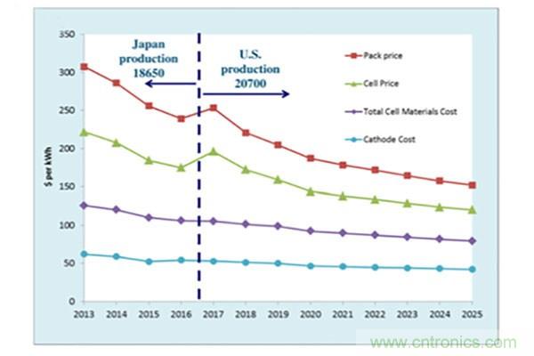 Panasonic、Samsung、LG的18650電池良率一般在98%以上(一次直通率),而國(guó)內(nèi)的一般控制在90%左右,電池的成本降低是以量和良率的不斷提高為基礎(chǔ)的,下圖為Tesla電池成本的降低圖。這里面存在的潛在風(fēng)險(xiǎn)是:“Battery cost will go up slightly in 2017 due to high depreciation charges, but larger capacity per cell will neutralize the increase by 2018. However, if the factory is installed and utilization is below, say, 70%, there will be no cost advantage over evolutionary growth, even in 2020”。