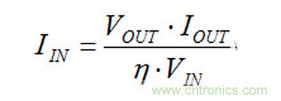 現(xiàn)在讓我們再回到無負(fù)載輸入電流。你有時在數(shù)據(jù)表中找不到這個輸入電流,或者它未在你所需條件下被指定。在這個情況下,你可以使用方程式1來估算出一個降壓穩(wěn)壓器的無負(fù)載輸入電流: