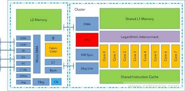 GAP8處理器來(lái)自義大利波隆納大學(xué)(Universities of Bologna)與瑞士蘇黎世聯(lián)邦理工學(xué)院(ETF Zurich)開(kāi)發(fā)的RISC-V開(kāi)放源碼硬體PULP核心技術(shù)轉(zhuǎn)移。GAP8采用8顆PULP核心以及1個(gè)TensorFlow處理器元(TPU),為基于硬體的模式匹配應(yīng)用加速卷積神經(jīng)網(wǎng)路。