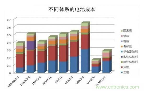 同時, 電池能量密度提升,也會對電池的壽命要求有很大的降低;更為重要的是,電池的成本甚至可以降至0.2元/Wh,遠低于各大政府機構(gòu)和商業(yè)機構(gòu)的規(guī)劃和預期。(見最后一圖,主要基于松下18650電池實際能量密度/理論能量密度占比反推核算。)