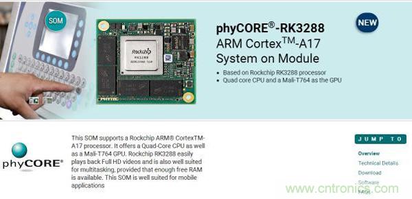 國際知名的處理器及電子技術(shù)型公司Phytec,推出了phyCORE-RK3288 ARM CortexTM-A17 System on Module,采用RK3288 SOM做工控板。根據(jù)Phytec網(wǎng)站資料描述,瑞芯微RK3288 CPU以及GPU性能強大,可輕松應(yīng)對全高清視頻與多任務(wù),非常適用于移動應(yīng)用。