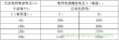 1、根據(jù)交流電網(wǎng)電壓有效值和過電壓類別確認交流電網(wǎng)電源瞬態(tài)電壓(由附錄Z和表2J確定);