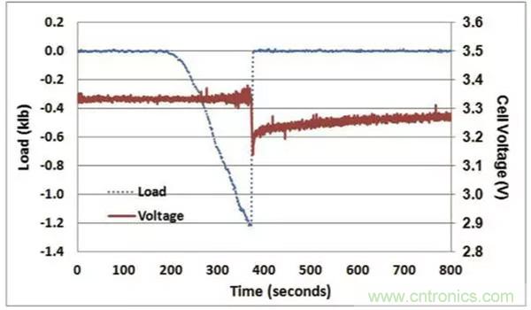 為了方便讀者理解本文,下圖是給出了LFP電池一個(gè)非常典型的成功通過機(jī)械擠壓測試(正反饋)的判據(jù),電池?cái)D壓變形達(dá)到一定的程度后,引起了電池內(nèi)短路的發(fā)生,電池電壓迅速下降,檢測到電壓下降后(0.1V),擠壓力隨之被移除,電池的電壓快速回升,電池沒有發(fā)生熱失控,則電池通過擠壓實(shí)驗(yàn)。