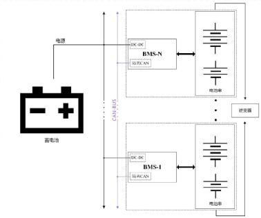 首先,應(yīng)避免BMS模塊之間的相互干擾,電源輸入前端使用隔離DC-DC電源。一臺車?yán)镉泻芏郆MS模塊,每個(gè)模塊都集中從蓄電池里取電,具體電動(dòng)汽車內(nèi)部框圖如圖3所示。為保證每個(gè)模塊供電不會相互串?dāng)_,同時(shí)保證BMS單個(gè)模塊的獨(dú)立性,因此需要在BMS的電源輸入前端使用隔離DC-DC電源,并且輸入電壓范圍應(yīng)較寬。