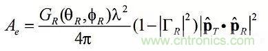 其中: PT是發(fā)射功率; r是天線范圍或距離; ΓT是發(fā)射器反射系數(shù); GT(θT,ΦT)是與角度有關(guān)的發(fā)射器增益。