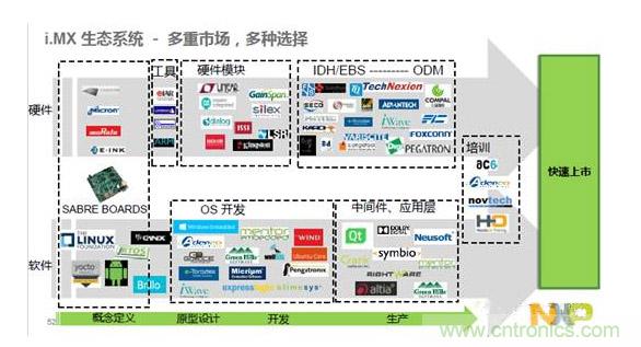 除了S32V系列,被收購的飛思卡爾有一款著名的i.MX系列芯片也可以作為中央處理器。i.MX特別是i.MX6在汽車上,特別是車載信息系統(tǒng)上有大量的應(yīng)用。眾多的汽車廠商使用i.MX。