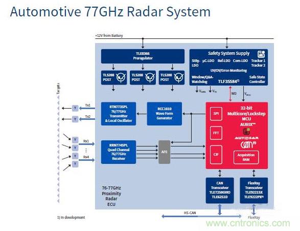 作為汽車電子、功率半導(dǎo)體以及智能卡芯片的全球市場領(lǐng)袖,英飛凌一直以來為汽車等工業(yè)應(yīng)用提供半導(dǎo)體和系統(tǒng)解決方案。英飛凌在24/77/79G雷達、激光雷達等傳感器器件及處理芯片方面都具有領(lǐng)先的技術(shù)。除此之外,在車身控制、安全氣囊、EPS、TPMS等等各方面都有自己的解決方案。