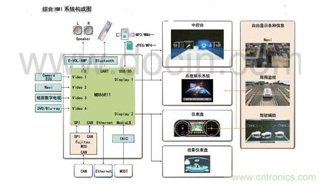 富士通的ADAS技術(shù)主要涉及透過攝像頭和傳感器的結(jié)合,實現(xiàn)圖像識別輔助和接近目標檢測,應(yīng)用的領(lǐng)域主要有360度3D立體全景輔助、可視停車輔助、駕駛盲區(qū)監(jiān)控、安全開車門以及車行駛方向周圍的障礙物和行人的識別。包括基于MB86R11“Emerald-L”2D/3D圖像SoC的全景視頻系統(tǒng)支持前后左右四個攝像頭進行汽車周邊環(huán)境的實時全景視頻監(jiān)測。從公開資料顯示,富士通似乎更熱衷于虛擬儀表盤及車載信息娛樂系統(tǒng)的構(gòu)建,但這一塊是最容易被國內(nèi)芯片公司模仿并超越的。