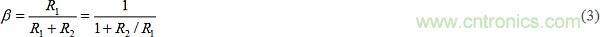 Ri(單位為V/A或歐姆)是電流-電壓轉(zhuǎn)換的整體增益。為感測輸出電壓VO,該電路使用分壓器R1-R2產(chǎn)生電壓ßVO,其中: