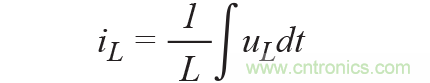 在這個例子中,導通時間內(nèi)電感兩端的電壓約為44.7 V,開關(guān)節(jié)點一側(cè)的電壓為48 V,輸出端電壓為3.3 V。電感電流通過以下公式計算: