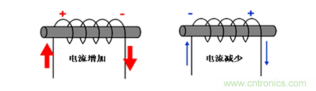 當(dāng)交流電通過電感時(shí),電流產(chǎn)生的磁場(chǎng)將其他的繞線切隔,因而產(chǎn)生反向電壓,從而阻礙電流變化。反之當(dāng)電流減少時(shí),則向電流增加的方向產(chǎn)生。