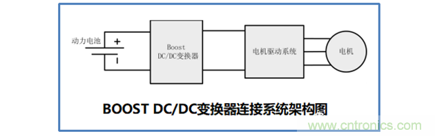 新能源汽車上使用的BOOST DC-DC變換器主要用于高壓系統(tǒng)的升級(jí),將動(dòng)力電池系統(tǒng)的電壓等級(jí)再行升高, 以匹配更高等級(jí)的電機(jī)驅(qū)動(dòng)系統(tǒng)。BOOST DC/DC 變換器的系統(tǒng)結(jié)構(gòu)圖下圖所示。