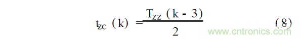 式中, TZZ ( k - 1)為第k - 1次過零點(diǎn)到第k次過零點(diǎn)的時(shí)間; tZC ( k)為第k次過零點(diǎn)到第k次換相點(diǎn)的延遲時(shí)間.
