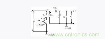反偏截止,開關管電流下降為0,而集電極電壓上升為高電位。根據(jù)同名端的定義,脈沖變壓器T次級線圈L2上就會感應得到上正下負的脈沖電壓,該電壓使二極管VD1正偏導通。這樣,開關變壓器 T 次級繞組感應輸出的電壓一方面為負載RL提供電流,另一方面又對電容器C進行充電。